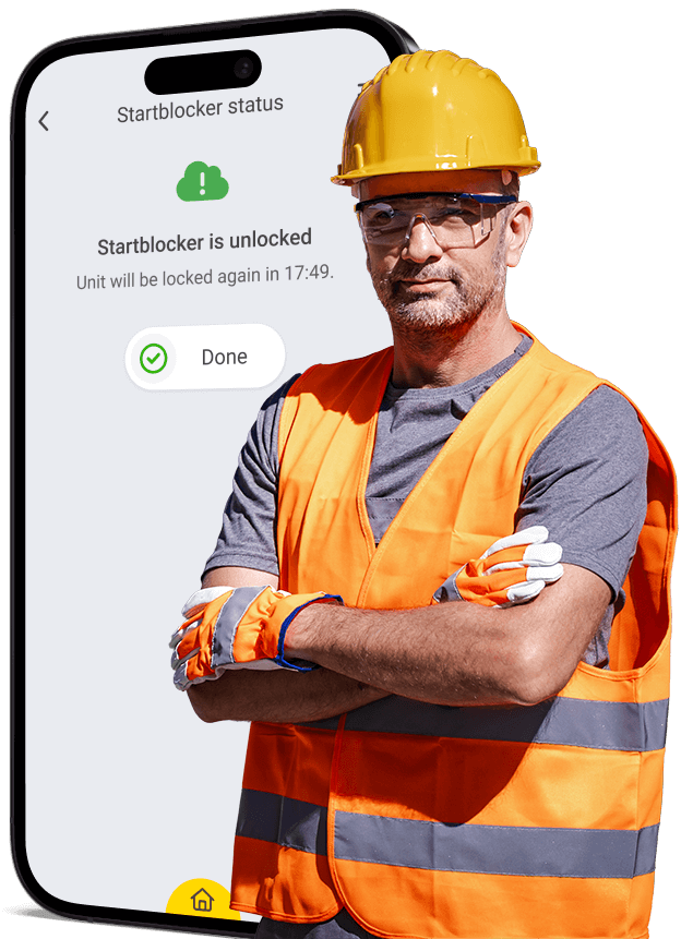 The app communicates with the device via Bluetooth, granting start access for a defined number of hours after the inspection is completed.Emergency Start With Full Traceability